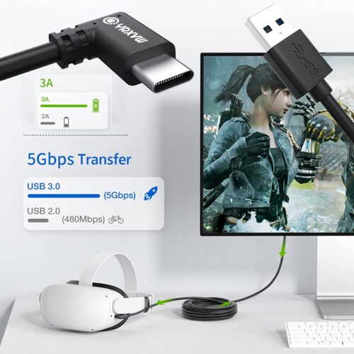 - 📶 【Low Latency High Output】YRXVW Link Cable Compatible with Meta Oculus Quest 3S/Quest 3/2/Pro/1, provides faster data transmission with 5 Gbps, a low delay rate. The white VR headset link cord can quickly transmit data for the VR gaming headset, bringing smoother game experience. Never freezing even disconnection.